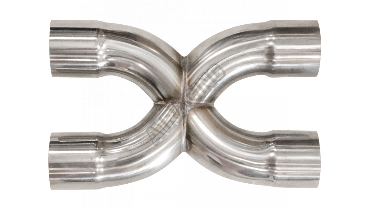 Kovový spoj X-PIPE. Spojka je určená pri konštrukcii výfukového systému s motormi typu V. Urýchľuje