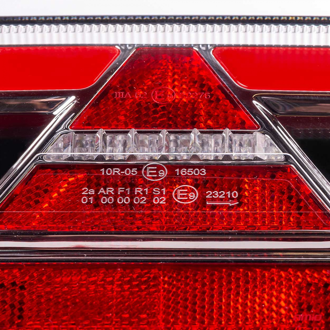 Dynamický smerový ukazovateľ je efekt putujúceho svetla smeru jazdy, v ktorom sa každá z diód rozsvieti s miernym oneskorením. Lampa môže pracovať v inštaláciách 12V aj 24V, má homologáciu elektromagnetickej kompatibility a stupeň ochrany IP 67. Pravdepodobne je to najkrajšia lampa na trhu.
