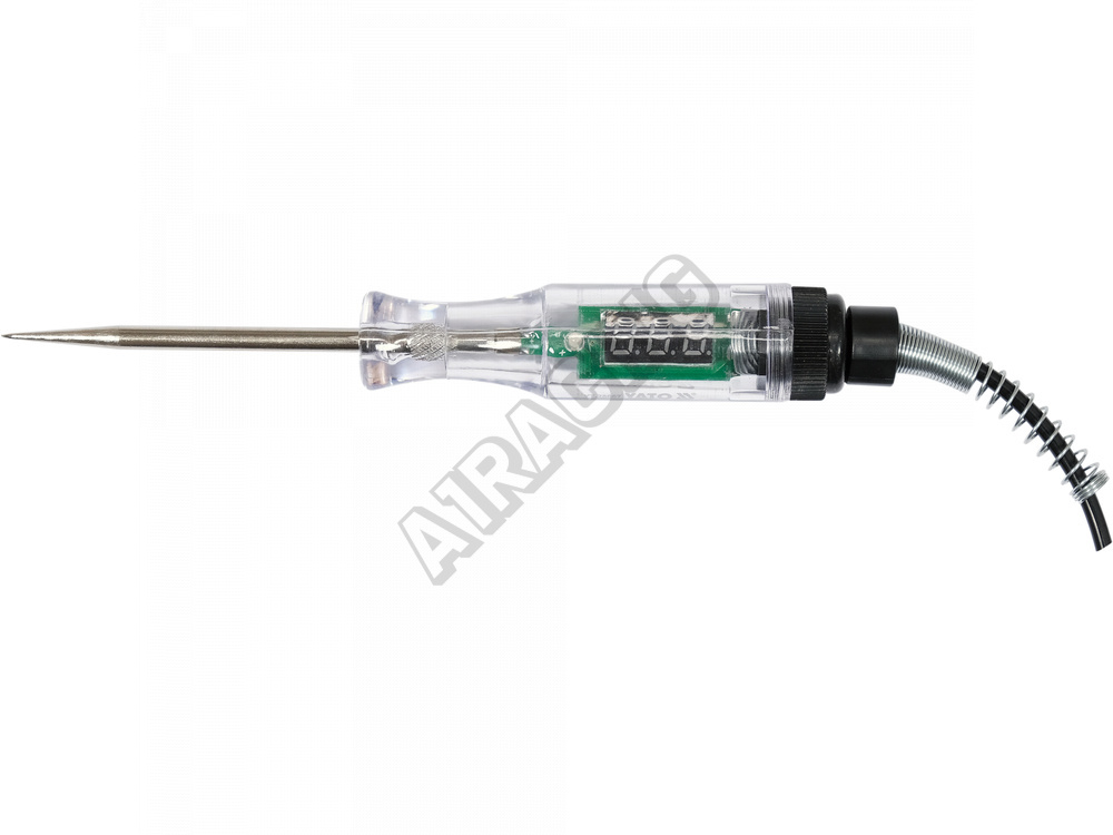 Zkoušečka vhodná pro opravy automobilů. Měřený rozsah 3-48V. Signalizace LED diodou a displej ukazující naměřené hodnoty, délka kabelu 270 cm.