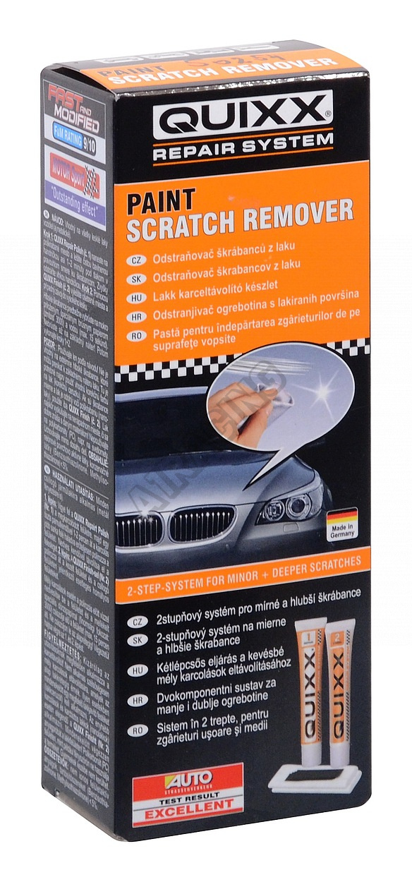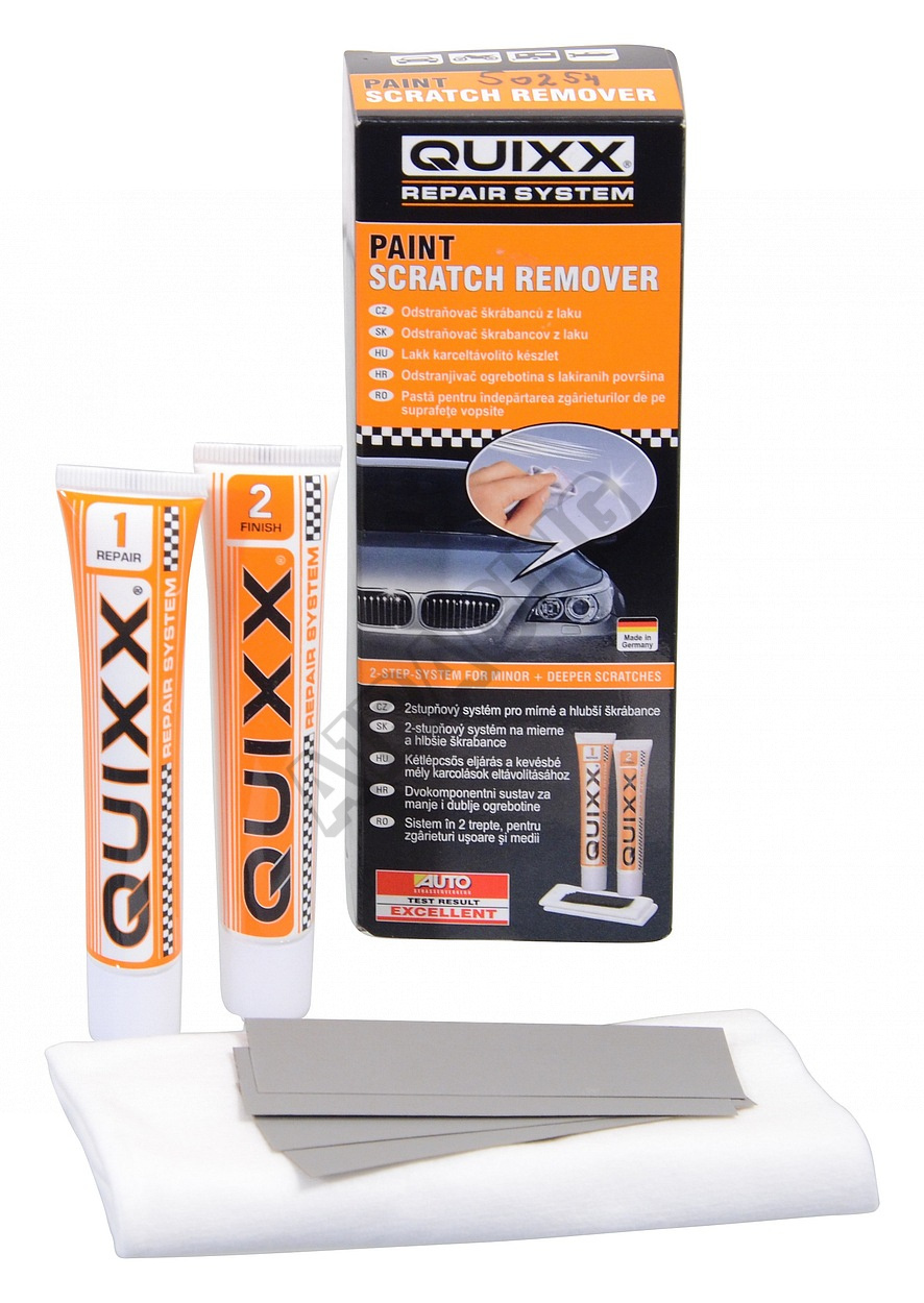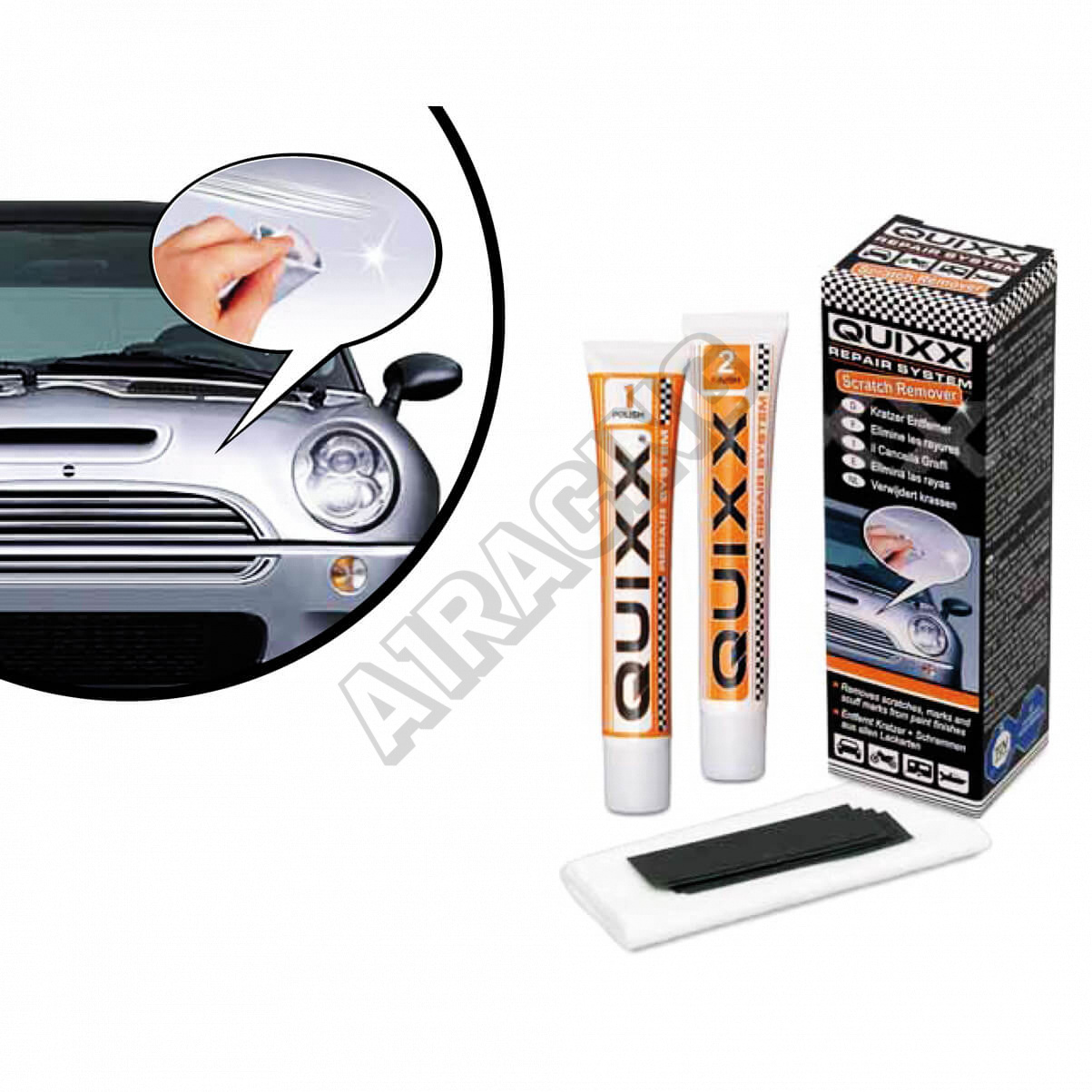 Quixx Vám může v mnoha případech ušetřit peníze za nalakování v servisu. Je jediný odstraňovač škrábanců, se kterým člověk může prokazatelně odstranit už i lehce viditelné škrábance od nehtů. Quixx je proslulý světový vítěz mezi odstraňovači škrábanců. Zvláštní PD technologie (plastic deformation technology) se stará o trvanlivé odstranění škrábanců. Škrábance se již znovu neobjeví ani po mnohačetném umytí vozidla. S Quixxem můžete také opticky významně vylepšit různé opravy provedené tužkou na opravu laku, pomáhá udržet hodnotu Vašeho vozidla a ušetřit výdaje za opravy.