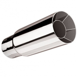 Velmi kvalitní masivní koncovka americké kultovní firmy Borla, která patří mezi prestižní americké výrobce sportovních výfuků, průměr vstupu i výstupu je 64 mm, délka 15 cm, komplet nerez leštěné provedení s logem výrobce, zajímavě řešena vnitřní perforace, tato koncovka rozhodně vydrží výkon auta min. 300 koní a nevypálí se jako levnější typy koncovek