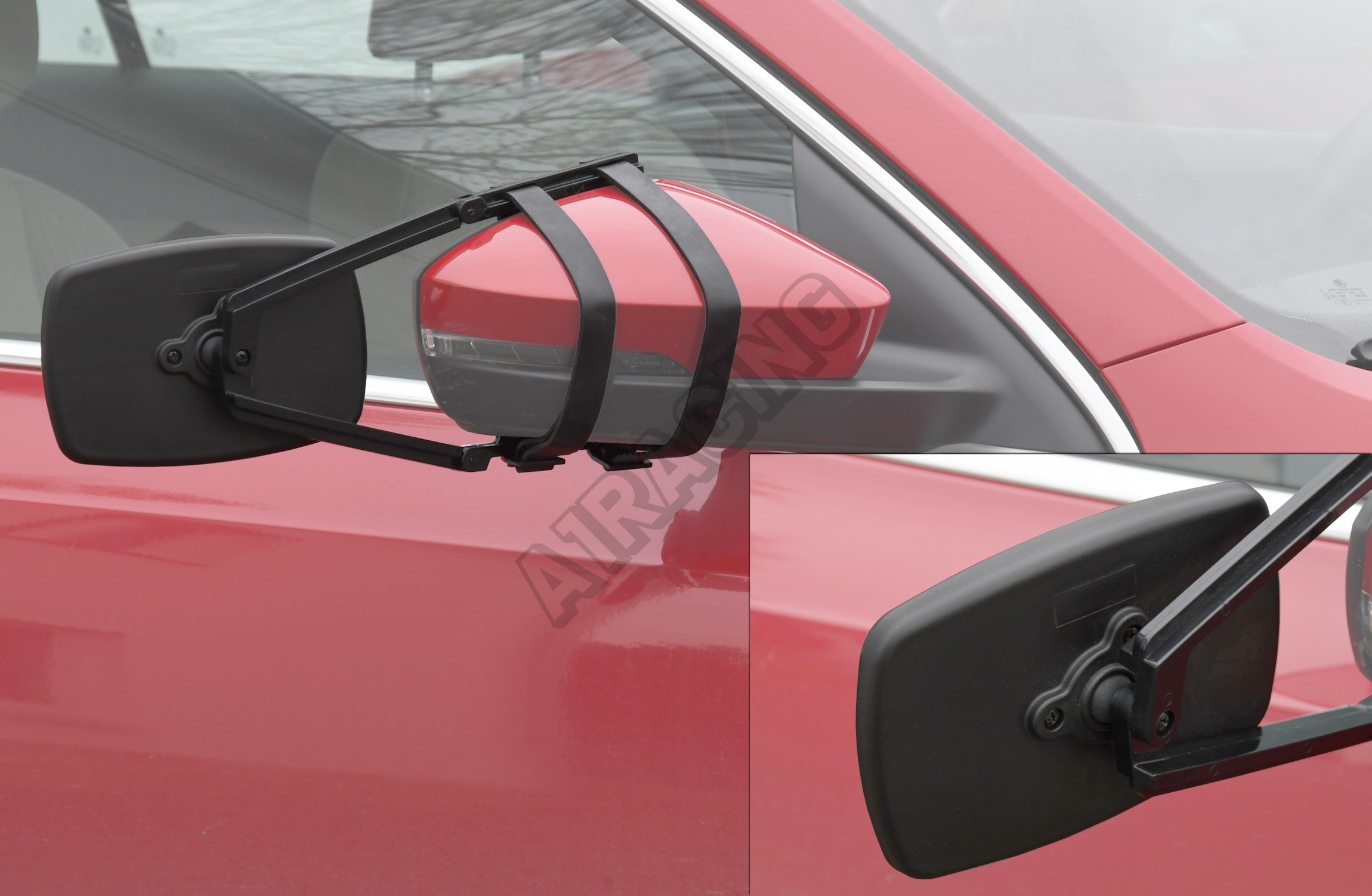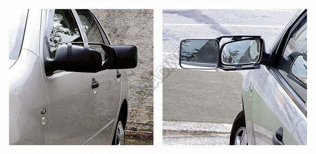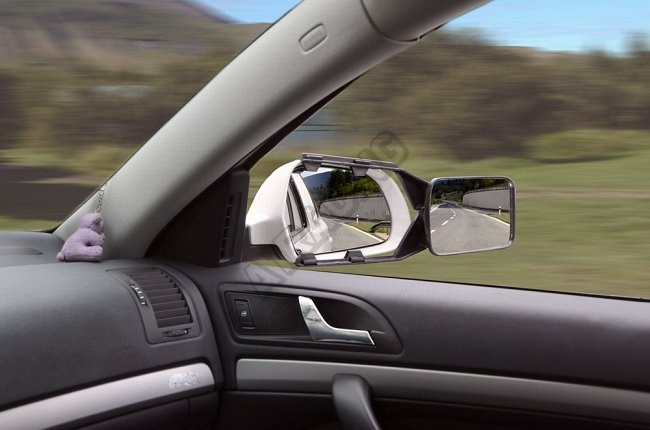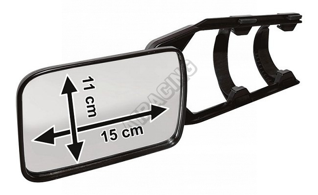Prídavné bočné zrkadlo s nastaviteľným uhlom do všetkých strán. Vhodné takmer pre všetky typy vozidiel, pripevňuje sa na existujúce bočné spätné zrkadlo. Vďaka gumovým upínačom zrkadlo nevibruje. Je možné použiť pre ľavú aj pre pravú stranu. Ideálny pomocník na jazdu s prívesom či karavanom. Neobmedzuje funkciu existujúceho zrkadla. Plocha zrkadla 11 x 14 cm, homologácia E4.
